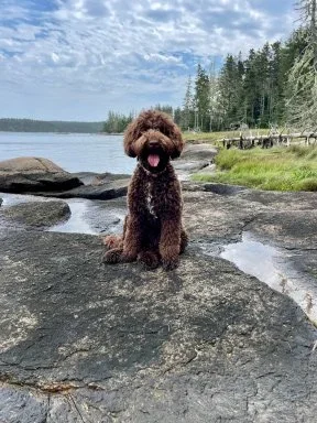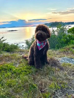 Finley is doing great! She completed a two week board and train as a puppy and absolutely LOVES walking on and off leash. She gets so excited when she meets other dogs and just wants to be everybody's best friend. We got incredibly lucky with Finley, she doesn't bark, she'll only get a little whiny when we have to crate her at home alone. In the last year, Finley has been on several vacations. She's been to the NC beach, Florida, Ohio, and Maine. She loves the car and will happily nap for the entire ride. We absolutely adore her, she is the light of our lives, even if she is a toilet paper thief ;)