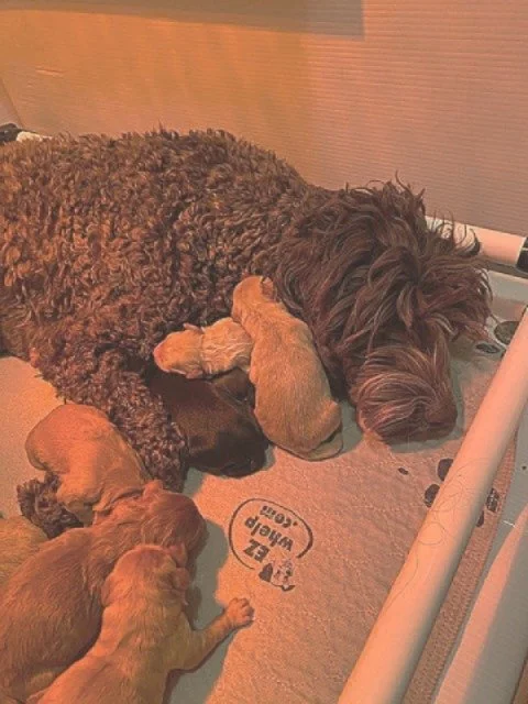 The litter from Indy and Gaxton arrived on 1/16/2026. Indy had 8 healthy little pups! Indy and the pups are all doing well. They are nursing and sleeping and Indy is being a great mom ! There are 2 boys and 6 girls in this litter. Deposits are being accepted and these pups will be ready for homes on 3/13/2026.